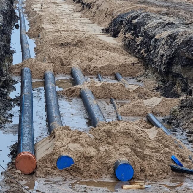 Meie portfell hõlmab nii omavalitsuste, arendajate kui ka eraklientide tellimusi. Oleme ellu viinud väga erinevaid projekte – alates vee- ja kanalisatsioonitrasside rajamisest kuni torustike renoveerimise, teede- ja platside ehituse ning erilahendusteni.